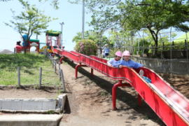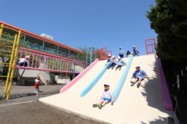 ![]() 南園庭から東園庭へ ドラえもん滑り台 |