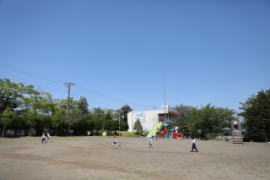 ![]() 広い園庭、隅々まで探検しよう |